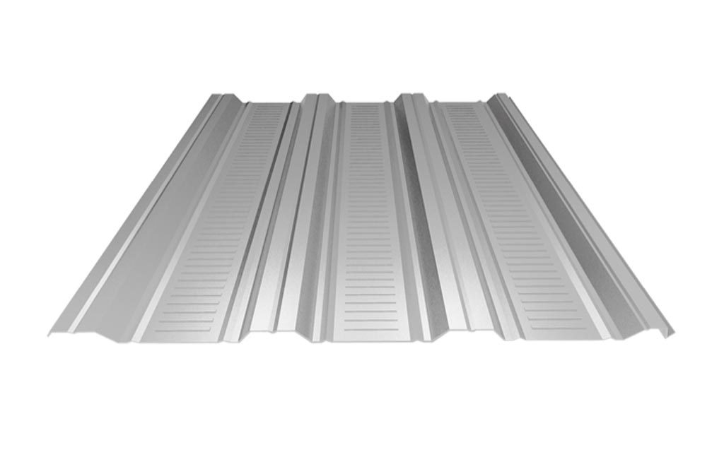 Lámina galvanizada prepintada de forma rectangular ideal para cubiertas y fachadas industriales.